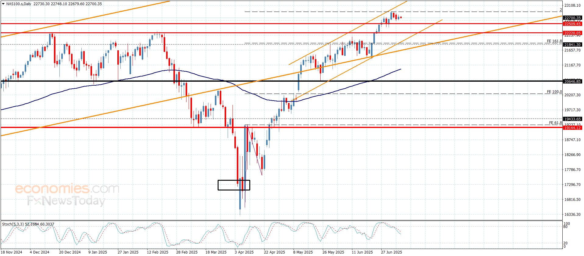 نؤكد حاليا على أهمية تجميع السعر للعزم الإيجابي ليسهل ذلك مهمة تجاوزه قريبا لمستوى 22770.00 ومن ثم ليبدأ باستهداف المحطات الإيجابية المتمركزة حاليا قرب 22850.00 وصولا للحاجز النفسي المستقر قرب 23000.00.