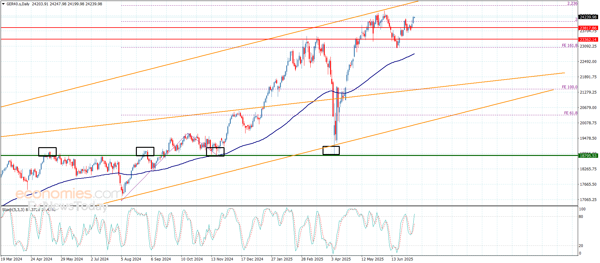 الثبات المتكرر فوق 24065.00 وبتقديم مؤشر ستوكاستيك للعزم الإيجابي سيزيد ذلك فرص استهداف السعر لمحطات إيجابية جديدة قد تمتد قريبا نحو 24350.00 وصولا للقمة المحققة مؤخرا والمتمركزة عند 24490.00.