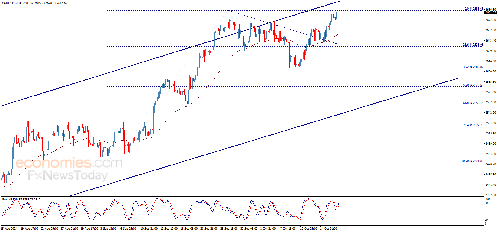 يعود سعر الذهب لملامسة مستوى 2685.50$، والذي يستمر بتشكيل مقاومة قوية أمام السعر، وطالما أن السعر دون هذا المستوى، فإن السيناريو السلبي يبقى مرجحاً للفترة القادمة، والذي تتواجد أهدافه التالية عند 2660.00$ ثم 2635.06$، مع الإشارة إلى أن سلبية مؤشر ستوكاستيك تدعم التوقعات بالانخفاض.