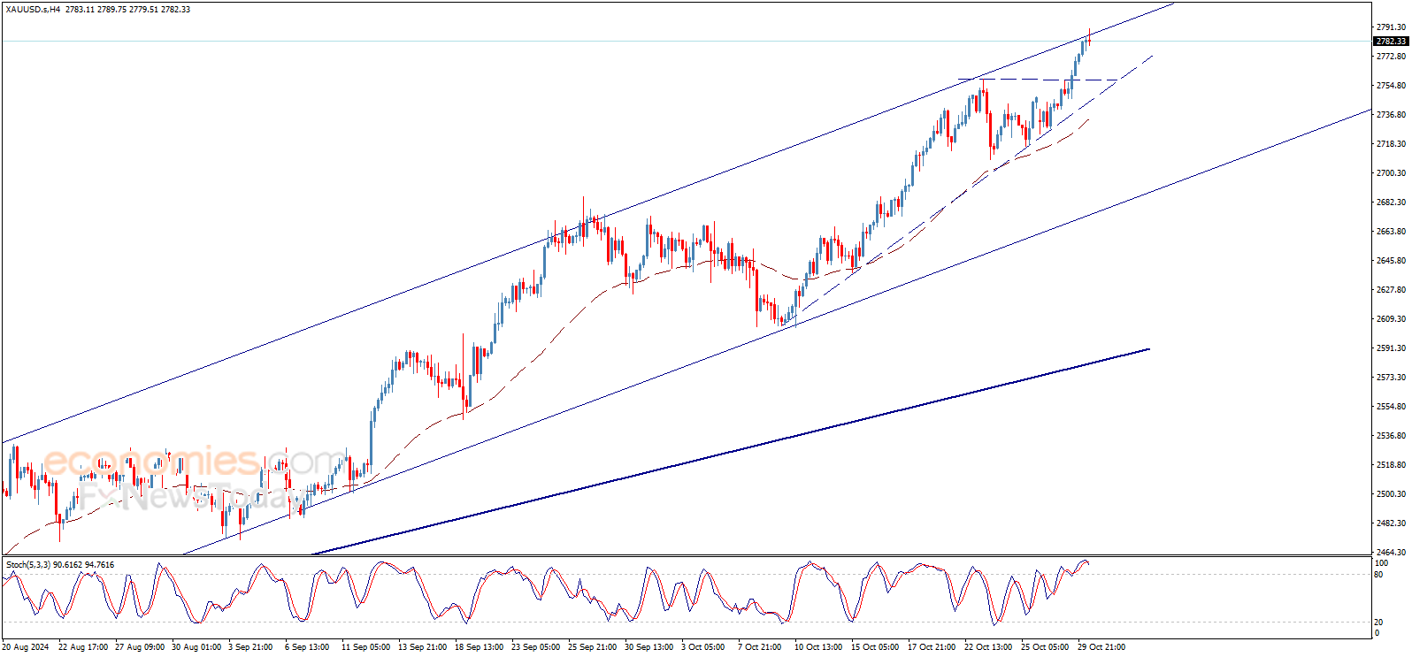 لامس سعر الذهب الهدف الإيجابي الأول 2785.00$ ويجد مقاومة جيدة هناك، ونذكّر بأن اختراق هذا المستوى سيمد الموجة الصاعدة لتصل إلى 2800.00$ كهدف رئيسي تالي، بينما يحتاج السعر للحصول على عزم إيجابي يساهم بمواصلة الارتفاع نحو الهدف الجديد.