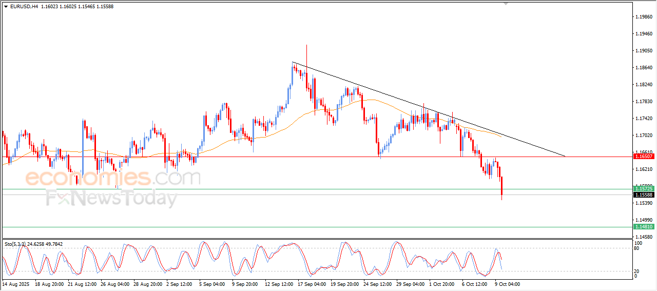 انزلق سعر اليورو مقابل الدولار (EURUSD) انخفاضاً خلال تداولاته اللحظية الأخيرة، ليكسر الزوج بهذا الانخفاض مستوى الدعم المحوري 1.1575، هذا الدعم الذي كان مستهدفاً سعرياً لنا بتحليلاتنا السابقة، في ظل سيطرة الاتجاه الرئيسي الهابط على المدى القصير وتداولاته بمحاذاة خط ميل، مع توارد الإشارات السلبية بمؤشرات القوة النسبية، بعد وصولها لمناطق تشبع شرائي.