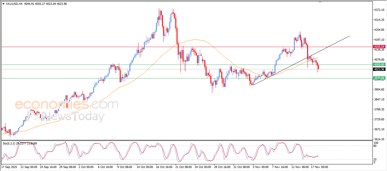 واصل سعر الذهب (GOLD) تراجعه خلال تداولاته اللحظية الأخيرة، متأثراً بكسر خط اتجاه فرعي صاعد على المدى القصير، ليكسر مستوى الدعم المهم 4,050، وهو ما أعاد فرض الضغوط السلبية على الحركة الحالية، ويأتي ذلك بالتزامن مع استقرار السعر دون متوسطه المتحرك البسيط لفترة 50، ما يقلّص من فرص التعافي في المدى القريب، خاصة مع غياب أي محاولات حقيقية لاستعادة الزخم الإيجابي.