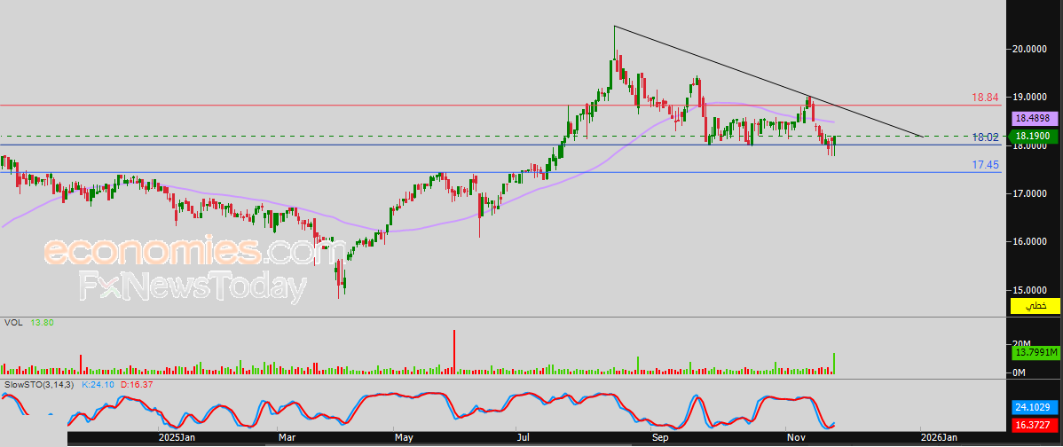 لذلك تشير توقعاتنا إلى هبوط سعر السهم خلال تداولاته القادمة، خاصة في حالة كسره للدعم المذكور 18.00 ريال، ليستهدف بعدها دعمه التالي عند سعر 17.45 ريال.