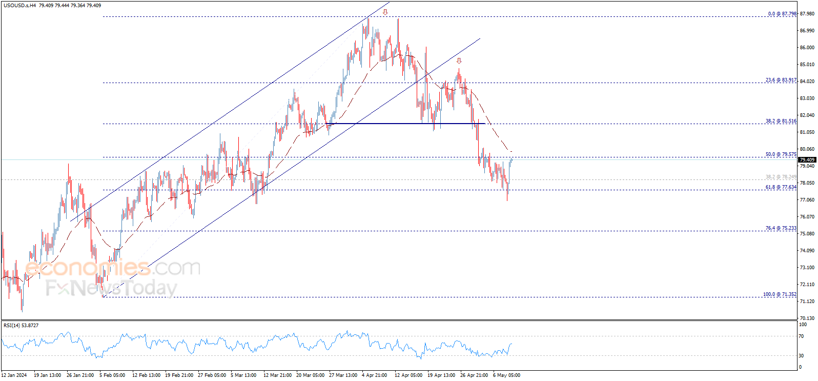 نطاق التداول المتوقع لهذا اليوم ما بين الدعم 77.60$ والمقاومة 80.70$.