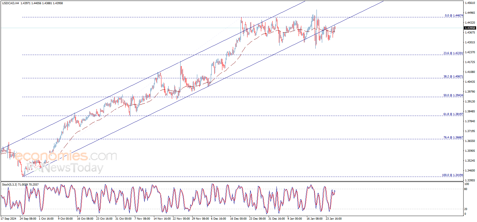 يستمر سعر الدولار الأمريكي مقابل الدولار الكندي بالتذبذب عند الدعم المكسور للقناة الصاعدة، ويحافظ على ثباته دونه، ليبقى سيناريو الاتجاه الهابط فعالاً، والذي يستهدف مستوى 1.4220$ بشكل رئيسي.
