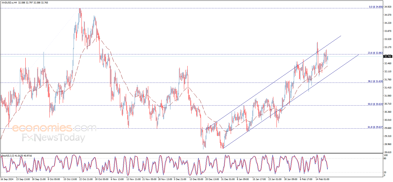 لم يتمكّن سعر الفضة من الثبات طويلاً فوق مستوى 32.86$، ليرتد هبوطاً ويقدّم تداولات سلبية في الجلسات الماضية، ونلاحظ أن مؤشر ستوكاستيك تخلّص من عزمه السلبي ليبدأ بالتقاطع بشكل إيجابي الآن، بانتظار تحفيز السعر على الارتفاع من جديد.