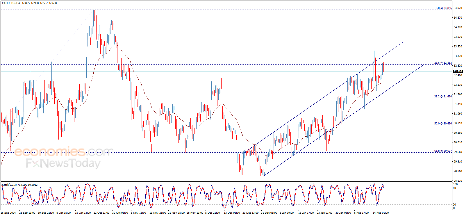 واصل سعر الفضة الارتفاع لينجح بملامسة هدفنا المنتظر عند 32.86$، ونلاحظ أن السعر يرتد هبوطاً مع بداية تداولات اليوم ليتجه نحو اختبار محتمل للدعم الفرعي 32.25$، مع الانتباه إلى أن كسر هذا المستوى سيدفع السعر لمواصلة الانخفاض واختبار مناطق 31.80$ قبل أي محاولة إيجابية جديدة.
