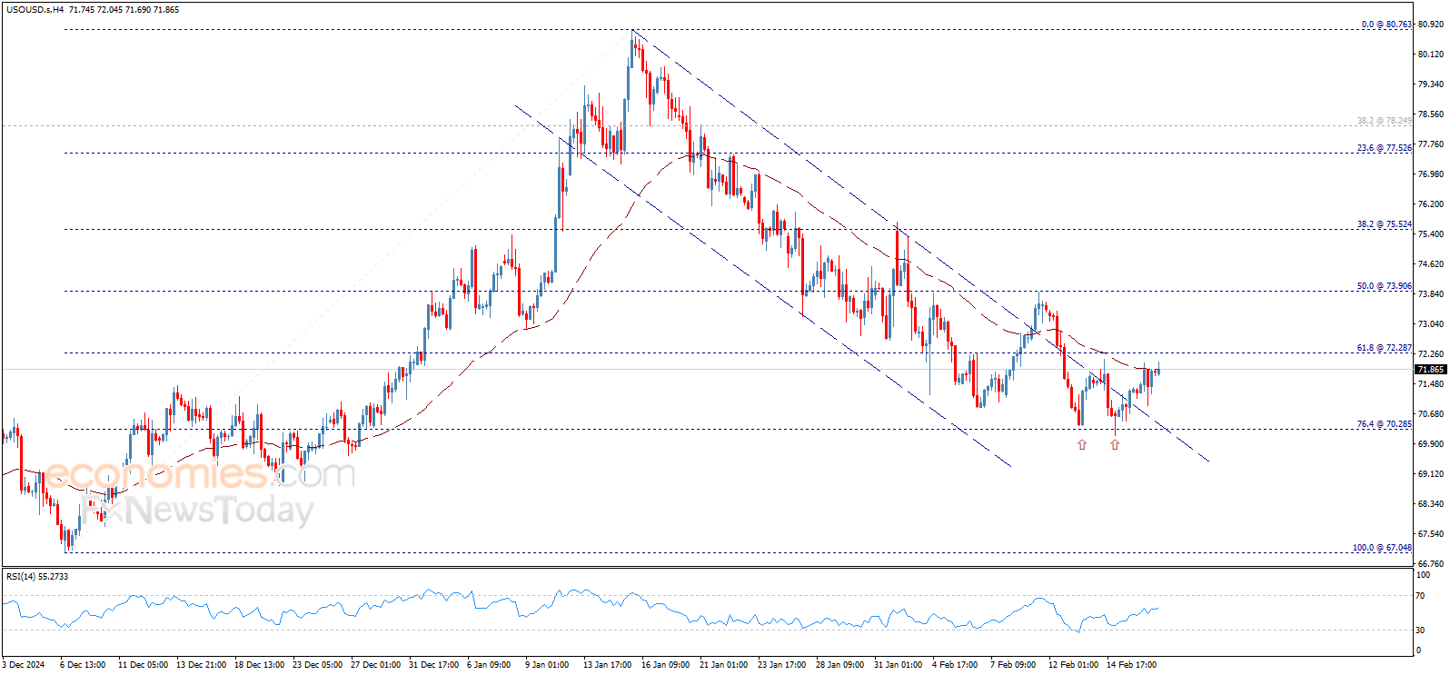 يظهر سعر النفط مزيد من الميل الصاعد ليتداول حول المتوسط المتحرك 50، ونلاحظ أن السعر يشكّل تركيبة فنية إيجابية قد تساهم بمواصلة الارتفاع واختراق المقاومة المحورية 72.30$ لفتح الطريق أمام تحقيق مزيد من المكاسب خلال الجلسات القادمة، لكننا نلاحظ أن المؤشرات الفنية تقدّم إشارات سلبية قد تضغط على السعر للانخفاض من جديد.