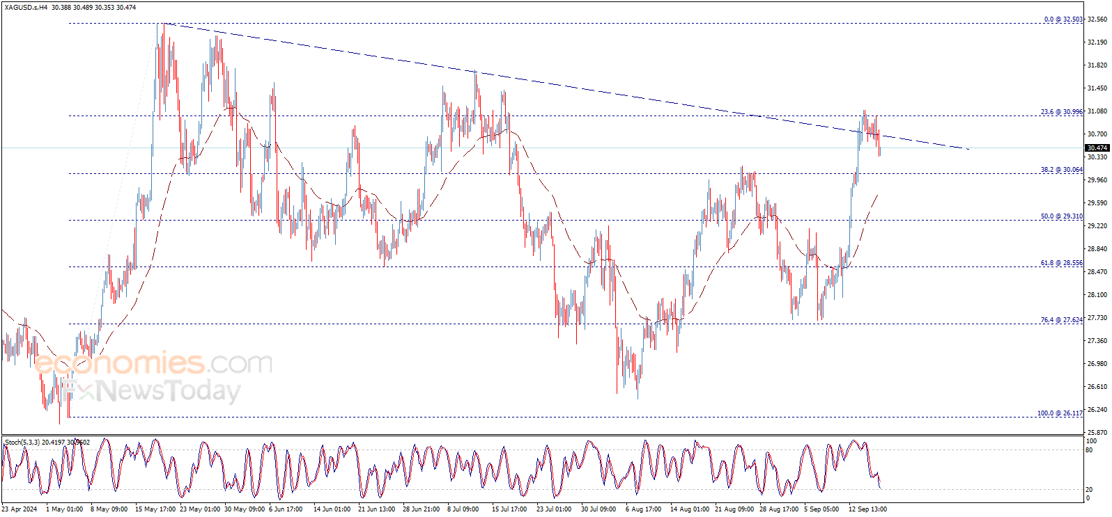 يفتتح سعر الفضة تداولات اليوم بسلبية إضافية ليكسر مستوى 30.63$ ويستقر دونه، ليتجه نحو تحقيق مزيد من الانخفاض المتوقع على المدى اللحظي، مستهدفاً زيارة مستوى 30.06$ خلال الجلسات القادمة.