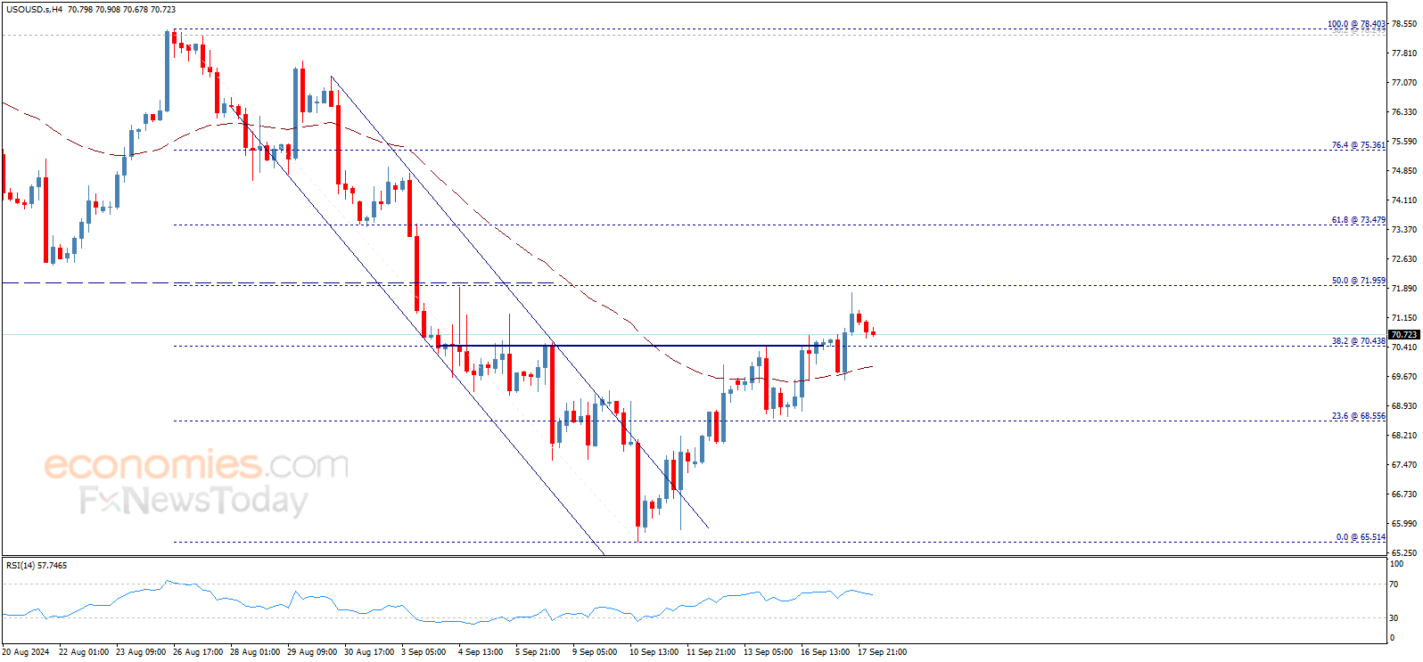 وبالتالي، لا يزال الاتجاه الصاعد فعالاً، مع الانتباه إلى أن كسر 70.43$ سيوقف السيناريو الإيجابي ويضغط على السعر للعودة إلى المسار الرئيسي الهابط من جديد.