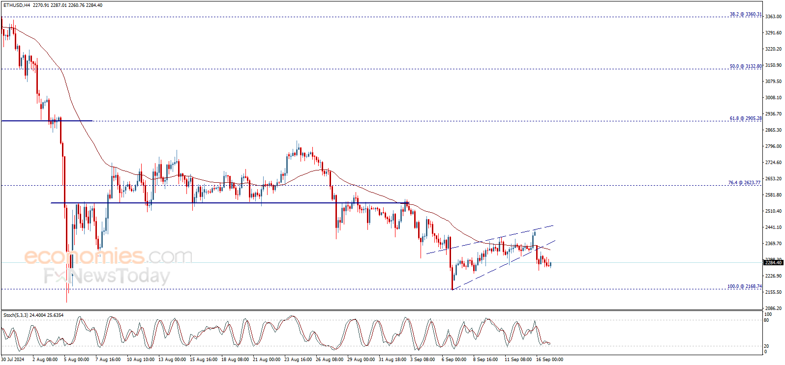 يعود سعر الإيثريوم (ETHUSD) للانخفاض بعد الارتفاع المؤقت الذي شهده في الجلسات الماضية، ليستقر دون حاجز 2300.00$، معززاً التوقعات باستمرار الاتجاه الهابط، بانتظار اختبار مستوى 2168.74$ كهدف تالي، مع الإشارة إلى أن كسره سيدفع السعر لزيارة حاجز 2000.00$ كمحطة سلبية تالية.