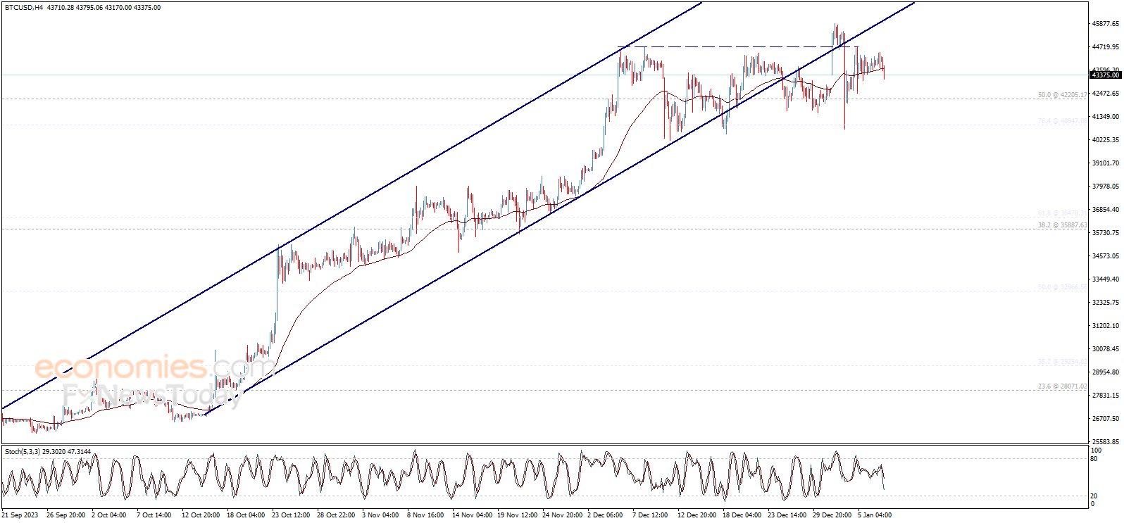 وبالتالي، سيكون الميل الهابط مرجحاً لهذا اليوم، مع الانتباه إلى أن اختراق 44500.00 سيوقف الانخفاض المتوقع ويقود السعر لاستئناف المسار الرئيسي الصاعد من جديد.