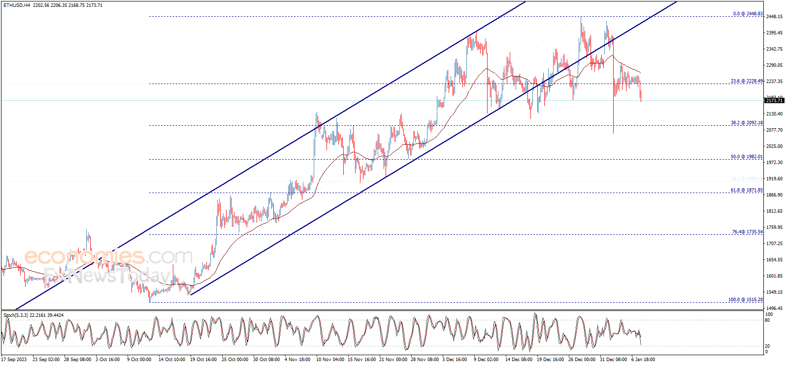 يبدأ سعر الإيثريوم (ETHUSD) تداولات اليوم بسلبية ملحوظة ليكسر مستوى 2228.50 ويفتح الطريق أمام إجراء تصحيح هابط جديد على المدى اللحظي، مستهدفاً اختبار مستوى 2092.20 مبدئياً، مع الإشارة إلى أن كسر هذا المستوى سيدفع السعر نحو مستوى تصحيح فيبوناتشي 50% عند 1982.00 بشكل مباشر.