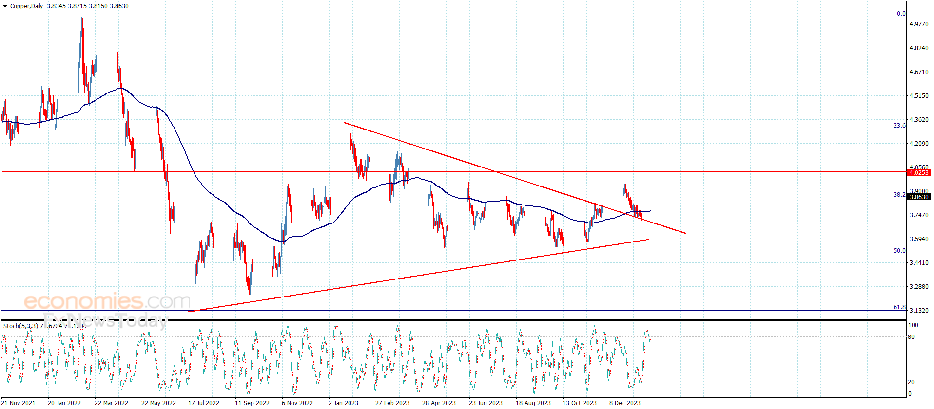 ما سبق يدعونا للتمسك بالترجيح الصاعد ولنؤكد على أهمية تجميع السعر للعزم الإيجابي ليمكنه ذلك من البدء باستهداف المحطات الإيجابية والتي تتمركز حاليا قرب 3.9200 و 4.0200 على التوالي.