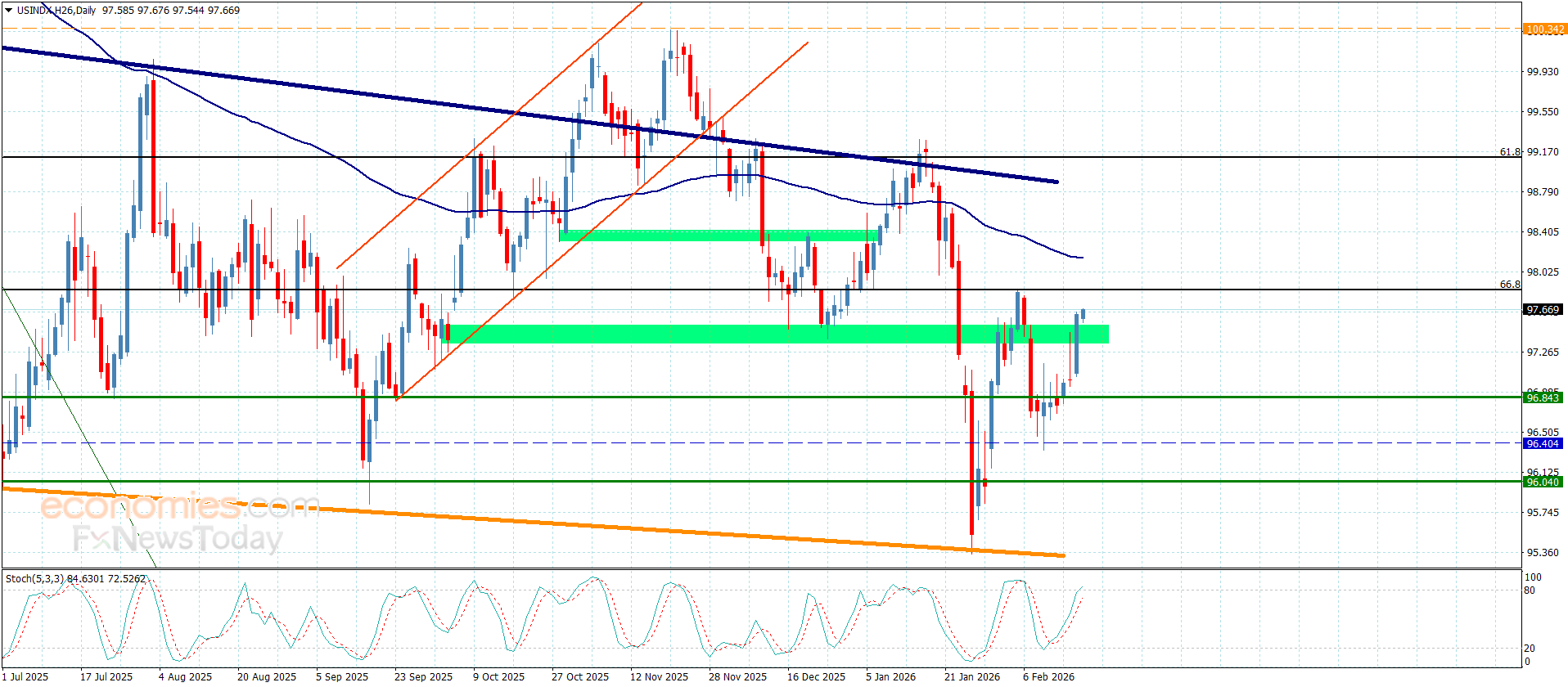 نطاق التداولات المتوقع لهذا اليوم ما بين 97.35 و 97.85