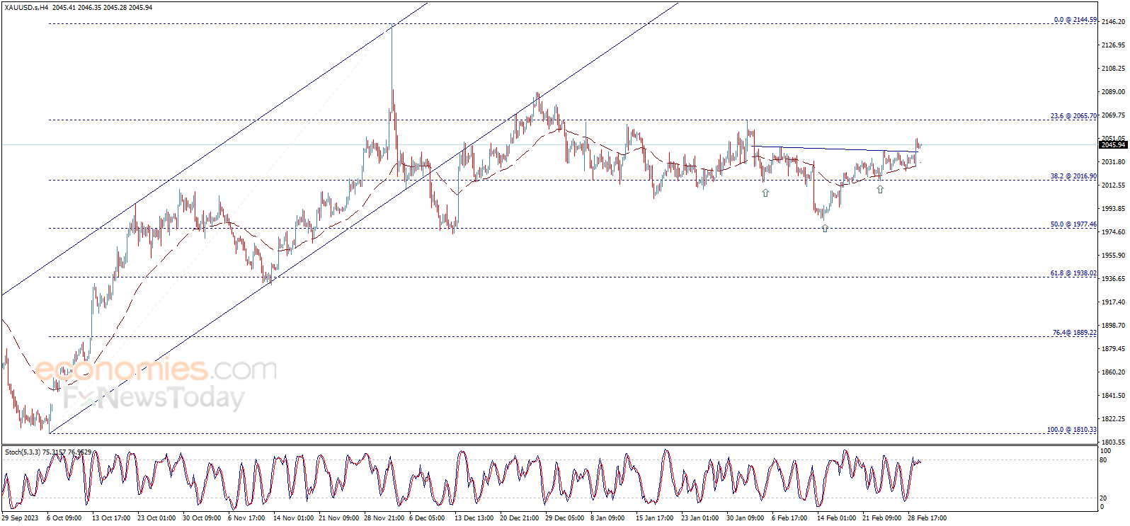 أكّد سعر الذهب اختراق خط الرقبة لنموذج الرأس والكتفين المقلوب بعد إنهاء تداولات يوم أمس فوقه، ليفعّل التأثير الإيجابي لهذا النموذج ويعزز التوقعات باستمرار الاتجاه الصاعد المتوقع على المدى اللحظي، مع التذكير بأن هدفنا الأول يتواجد عند 2065.70، ونرجّح تجاوز هذا المستوى لتحقيق مكاسب إضافية تصل إلى 2095.00.