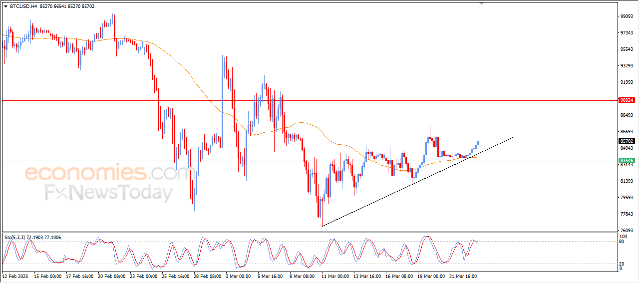 واصل سعر البتكوين (BTCUSD) ارتفاعه خلال تداولاته اللحظية الاخيرة، مدعوماً بسيطرة الاتجاه التصحيحي الصاعد على المدى القصير، مع استمرار تحركاته بمحاذاة خط ميل، إلى جانب تلقيه دعماً إيجابياً مستمراً نتيجة تداولاته المستمرة أعلى متوسطه المتحرك البسيط لفترة 50 شمعة سابقة.