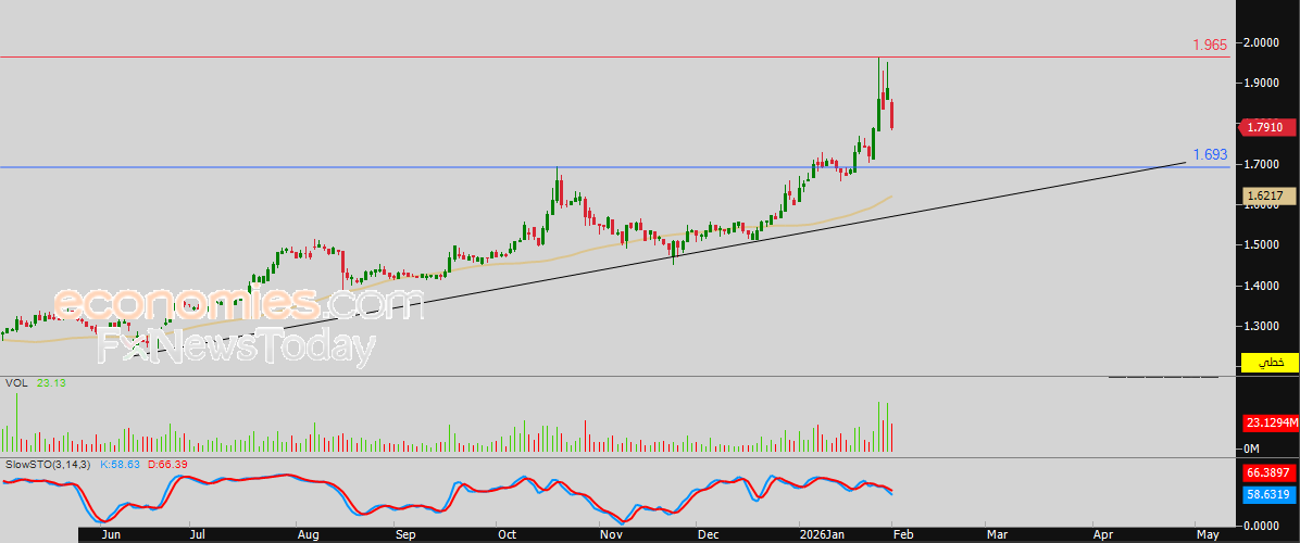 لهذا تشير توقعاتنا إلى ارتفاع سعر السهم خلال تداولاته القادمة، طيلة ثبات مستوى الدعم 1.693 ريال، ليستهدف مستوى المقاومة المحوري 1.965 ريال.