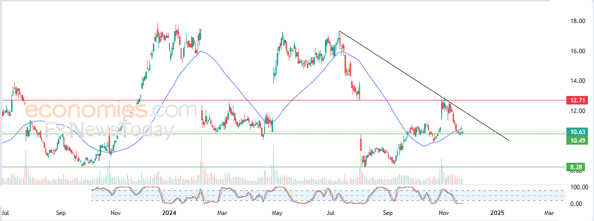 لهذا نحن نرجح عودة هبوط سعر السهم خلال تداولاته القادمة، خاصة في حالة كسره لمستوى الدعم 10.50$، ليستهدف بعدها مستوى الدعم المحوري 8.30$.