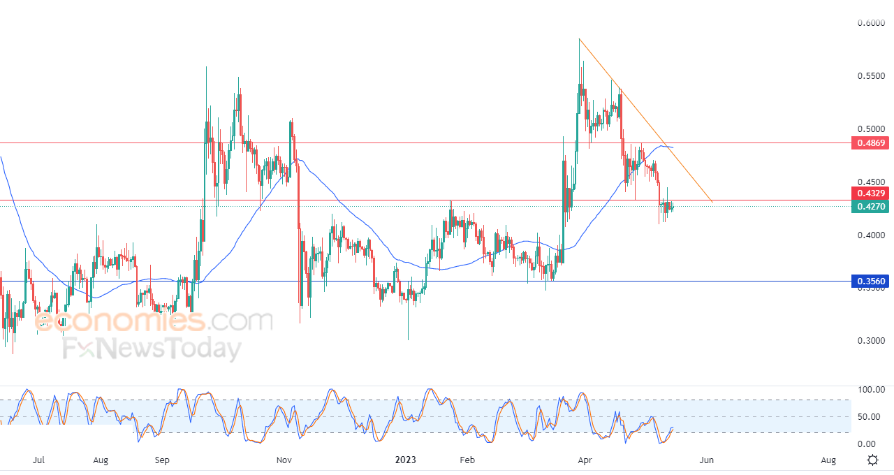 ولهذا تشير توقعاتنا إلى انخفاض الزوج خلال تداولاته القادمة، طيلة استقراره دون مستوى 0.4329، ليستهدف مستوى الدعم 0.3560.