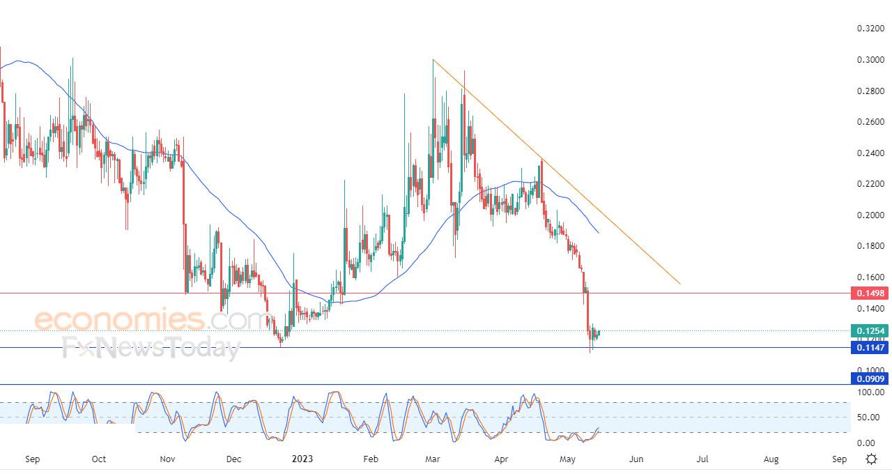 لهذا تشير توقعاتنا إلى ترجيح سيناريو انخفاض الزوج خلال تداولاته القادمة، خاصة في حالة كسره لمستوى الدعم 0.1147، ليستهدف بعدها مستوى الدعم 0.0900.