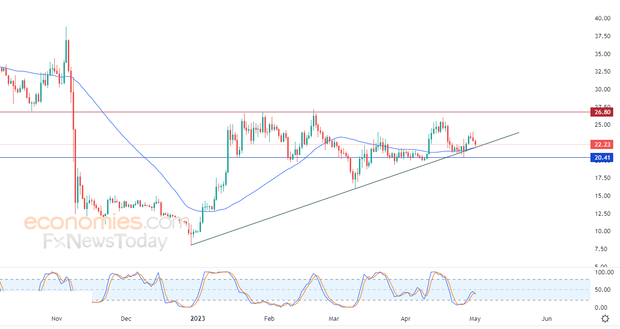 لهذا نحن نرجح عودة ارتفاع الزوج خلال تداولاته القادمة، طيلة ثبات مستوى الدعم 20.40، ليستهدف مستوى المقاومة المحوري 26.80.