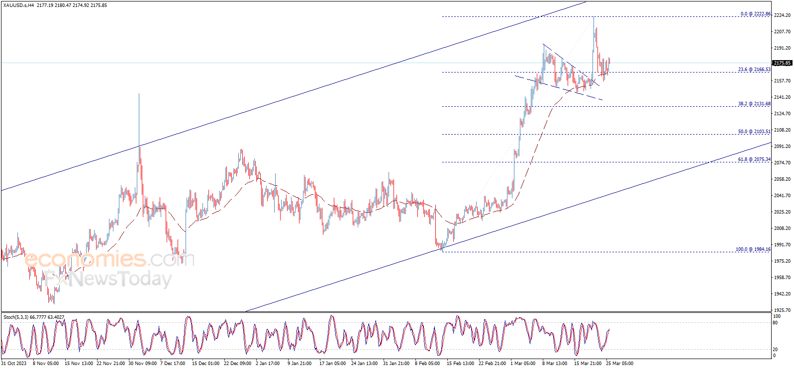 يتداول سعر الذهب بإيجابية ويحاول الابتعاد عن مستوى 2166.50$، ليدعم استمرار الاتجاه الصاعد المتوقع لهذا اليوم، والذي يعتمد على الثبات فوق المستوى المذكور، مع التذكير بأن هدفنا الرئيسي الأول يتواجد عند 2222.86$.
