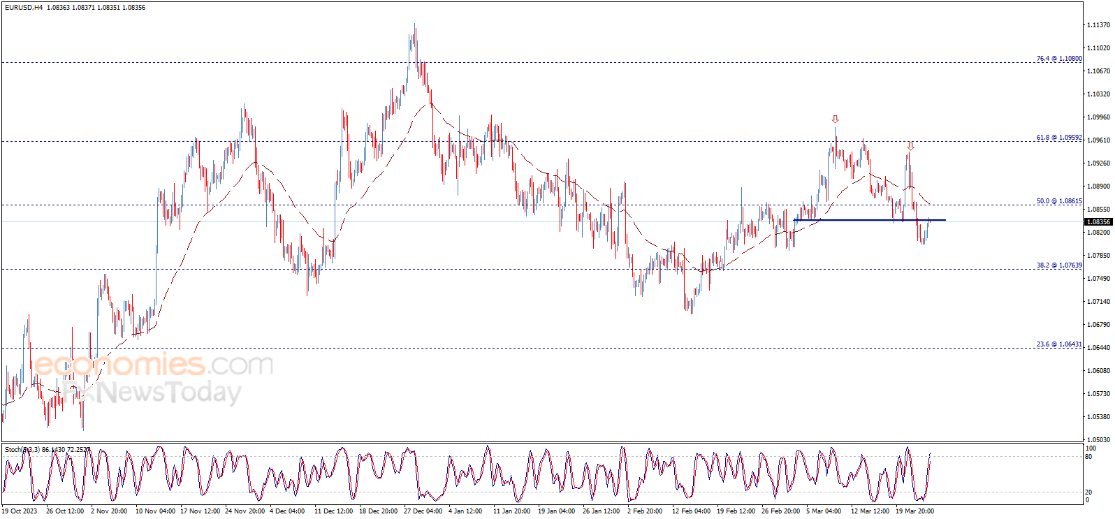 يجري سعر اليورو مقابل الدولار عملية إعادة اختبار لخط الرقبة المكسور لنموذج القمة المزدوجة، يرافقه فقدان مؤشر ستوكاستيك للعزم الإيجابي بشكل واضح، بانتظار استئناف التداولات السلبية والتوجه نحو أهدافنا التي تبدأ عند 1.0765$ وتمتد إلى 1.0690$، مع التذكير بأهمية الثبات دون 1.0860$ تحقيق هذه الأهداف.