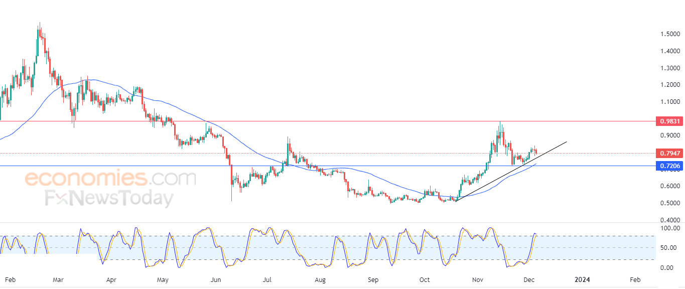 لذلك نحن نرجح عودة ارتفاع الزوج خلال تداولاته القادمة، طيلة ثبات الدعم 0.7206، ليستهدف مستوى المقاومة المحوري 0.9831.