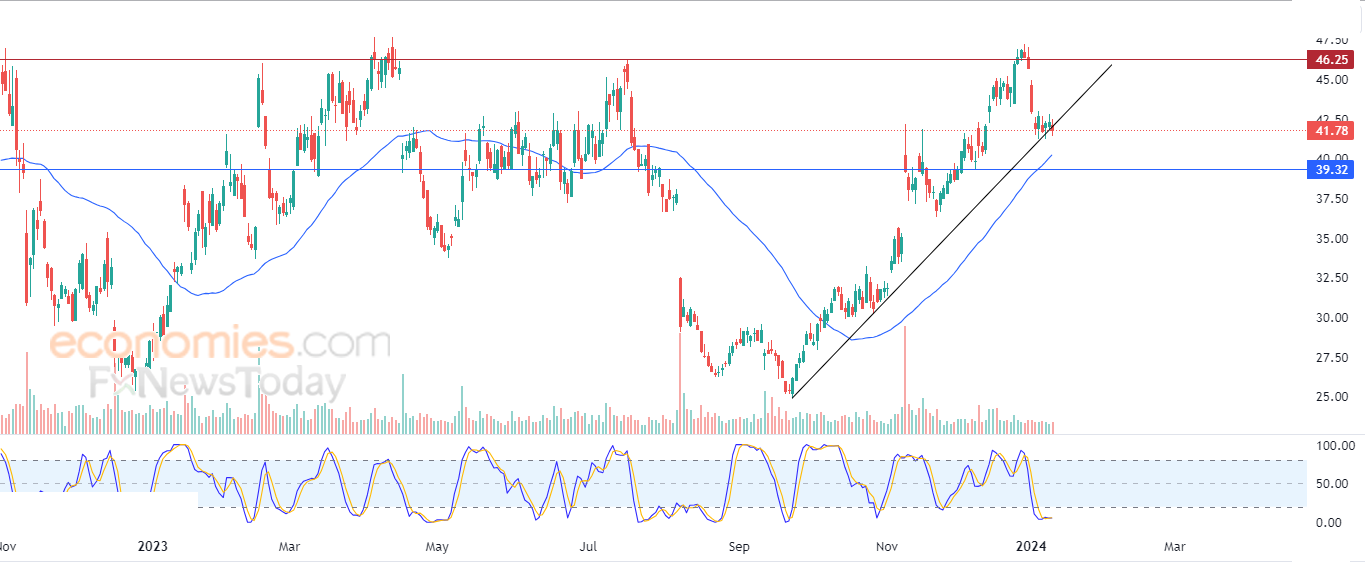 لذلك نحن نرجح عودة ارتفاع السهم خلال تداولاته القادمة، بشرط ثبات مستوى الدعم 39.32، ليستهدف من جديد مستوى المقاومة المحوري والعنيد 46.25.