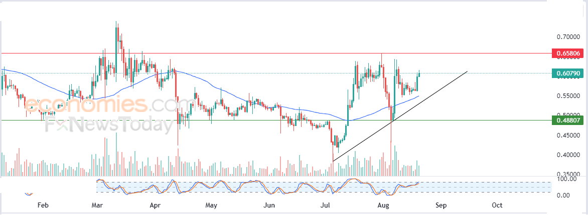 لذلك فتوقعاتنا تشير إلى المزيد من الصعود لسعر العملة خلال تداولاته القادمة، ليستهدف مستوى المقاومة المحوري والقريب 0.65806 استعداداً لمهاجمته.