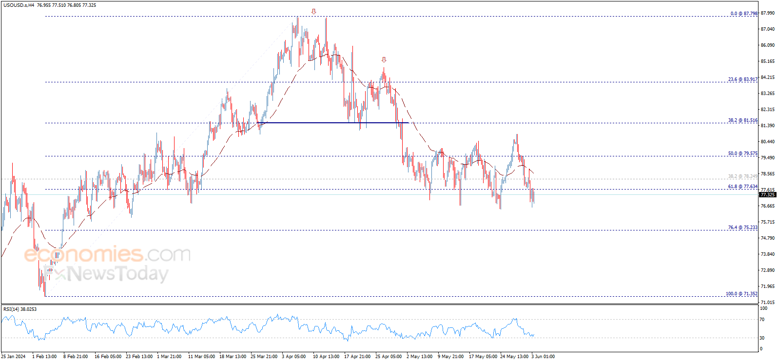 ما بين الدعم 75.70$ والمقاومة 78.70$.