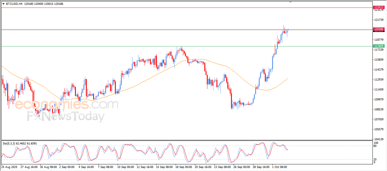 صعد سعر البتكوين (BTCUSD) بتداولاته القادمة على المدى اللحظي، بعدما نجح السعر في تصريف تشبعه الشرائي بمؤشرات القوة النسبية، ما يمنحه مساحة أوسع لتحقيق مكاسب جديدة على المدى القريب، خاصة ونلاحظ بدء ظهور تقاطعات إيجابية بتلك المؤشرات، ليهاجم السعر مستوى المقاومة النفسي 120,000$، في ظل سيطرة موجة فرعية صاعدة قوية على المدى القصير.