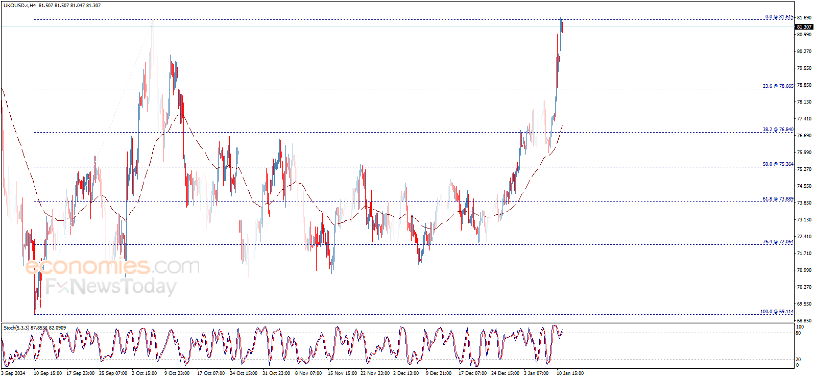 سلبية مؤشر ستوكاستيك الحالية قد تعيق مهمة السعر بالارتفاع بشكل مؤقت، مع التذكير بأن استمرار الموجة الصاعدة يتطلب الثبات فوق مستوى 80.05$.
