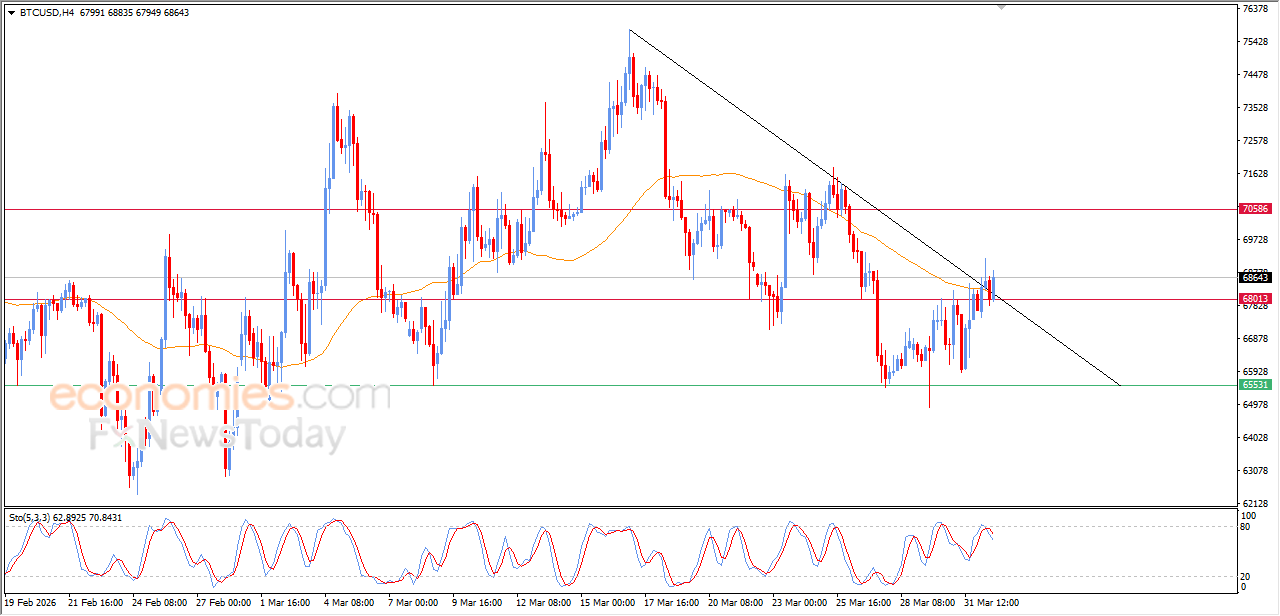 صعد سعر البتكوين (BTCUSD) خلال تداولاته اللحظية الأخيرة، لينجح السعر في اختراق خط اتجاه تصحيحي هابط على المدى القصير، وذلك بالتزامن مع قدرته على تخطي مقاومة متوسطه المتحرك البسيط لفترة 50، ليتخلص بذلك من ضغطه السلبي، ما يفتح له المجال لتمديد تلك المكاسب، ولكن في المقابل من ذلك نلاحظ بدء توارد الإشارات السلبية من مؤشرات القوة النسبية، بعد وصولها لمناطق تشبع شرائي، ما قد يكبح من تلك المكاسب ولو بشكل مؤقت.