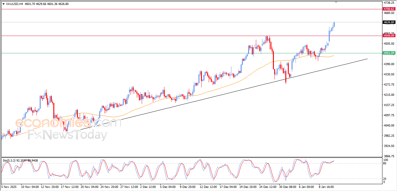 واصل سعر الذهب (GOLD) الصعود خلال تداولاته اللحظية الأخيرة، ليحصد مستويات قياسية جديدة في ظل سيطرة الاتجاه الرئيسي الصاعد على المدى القصير وتداولاته بمحاذاة خط ميل داعم لهذا المسار، مع توارد الإشارات الإيجابية من مؤشرات القوة النسبية، بالرغم من وصولها لمناطق شديدة التشبع بعمليات الشراء، ما يعكس قوة الزخم الإيجابي المحيطة بتلك الحركة الإيجابية.