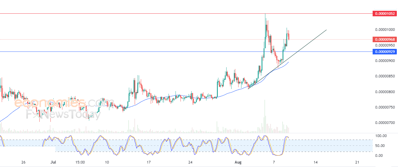 لذلك تشير توقعاتنا إلى ترجيح سيناريو ارتفاع الزوج خلال تداولاته القادمة، خاصة طوال استقراره فوق مستوى 0.00000929، ليستهدف مستوى المقاومة 0.00001052.