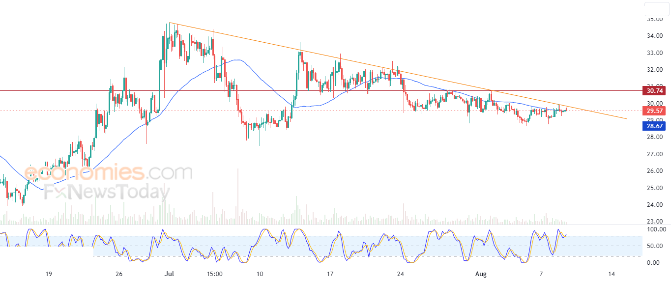 لذلك تشير توقعاتنا إلى انخفاض الزوج خلال تداولاته القادمة، طيلة ثبات المقاومة 30.75، ليستهدف مستوى الدعم المحوري 28.70.