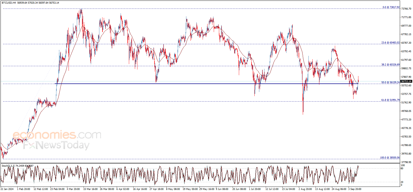 لذلك، سيكون الميل الصاعد مرجحاً لهذا اليوم، مع الأخذ بعين الاعتبار أن كسر 56160.00$ والثبات دونه من جديد سيعيد تفعيل السيناريو السلبي الذي يصل هدفه الرئيسي التالي إلى 51990.00$.