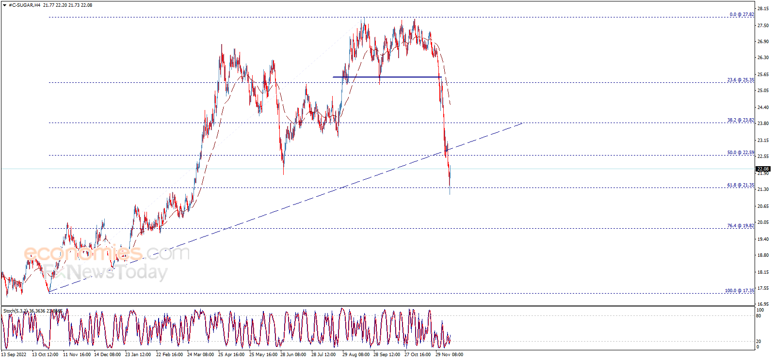 وبالتالي، سنستمر بترجيح الاتجاه الهابط للفترة القادمة، مع الانتباه إلى أن اختراق 22.60 سيوقف الانخفاض المتوقع ويقود السعر لمحاولة تعويض الخسائر التي تكبّدها مؤخراً.
