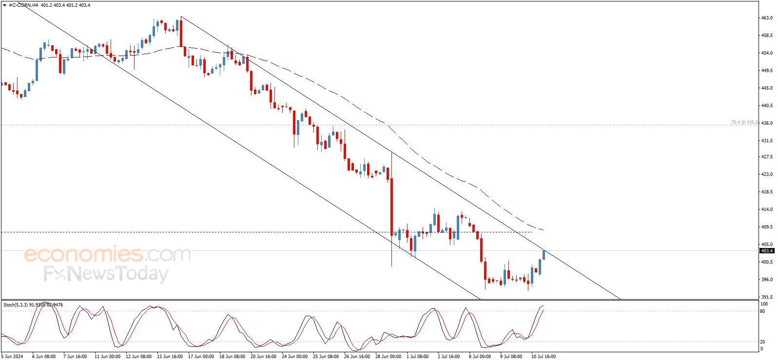 يبدأ سعر الذرة تداولات اليوم بإيجابية ملحوظة ليختبر مقاومة القناة الهابطة التي تظهر بالرسم البياني، مما يتطلب الانتباه من التداولات القادمة، حيث إن اختراق هذا المقاومة عند 404.00$ يليه اختراق 408.10$ سيقود السعر لبدء تصحيح هابط تبدأ أهدافه باختبار مناطق 420.20$.