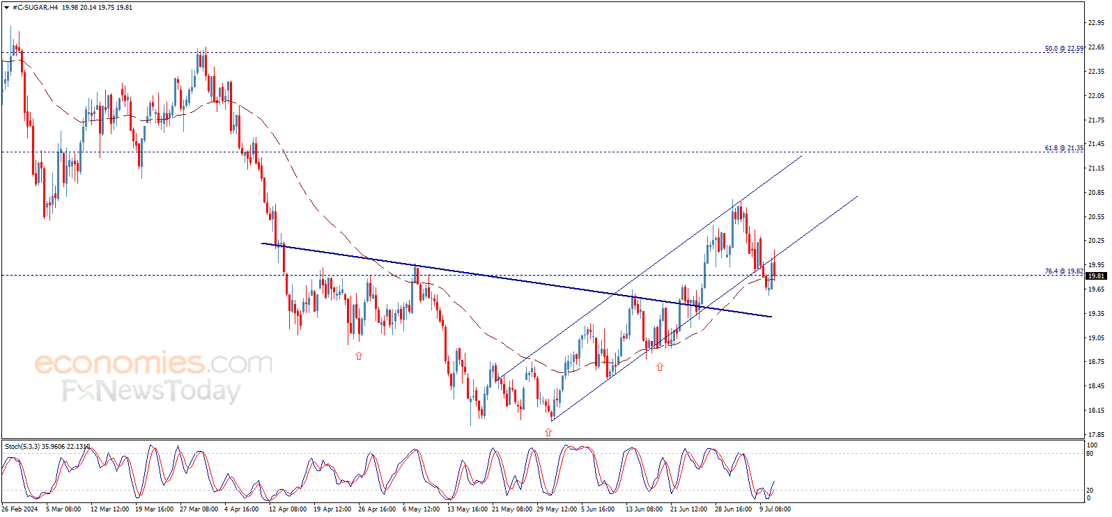 قدّم سعر السكر تداولات إيجابية يوم أمس ليعيد اختبار الدعم المكسور للقناة الهابطة، ونلاحظ أن السعر تماسك دون هذا المستوى ليبقى سيناريو الاتجاه الهابط قائماً وفعالاً للفترة القادمة، بانتظار التوجه نحو 19.32$ ثم 18.75$ كأهداف رئيسية تالية.