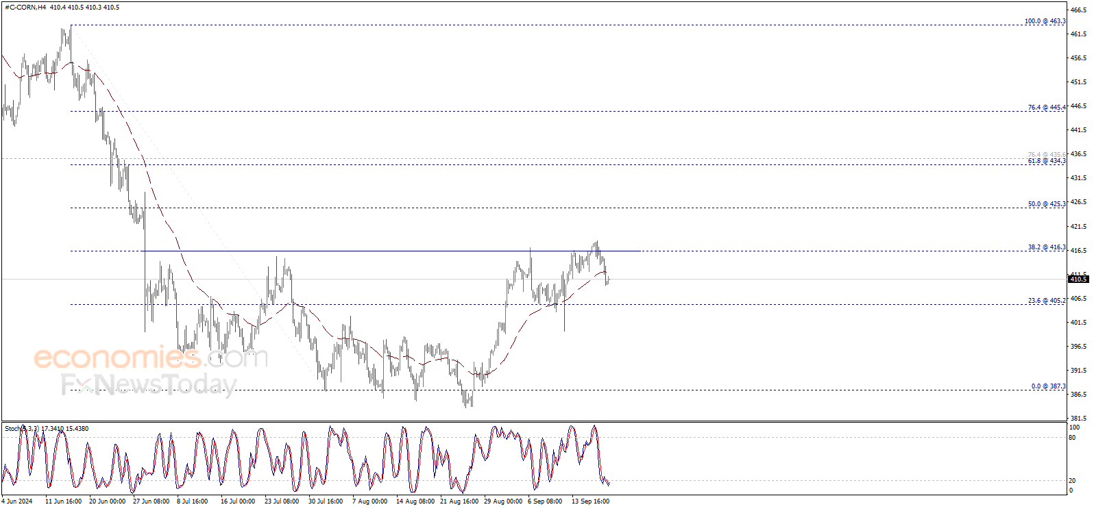تمكّن سعر الذرة من كسر مستوى 412.00$ والثبات دونه، معززاً التوقعات باستمرار سيطرة الاتجاه الهابط على المدى اللحظي، والذي يستهدف اختبار مستوى 405.20$ كمحطة رئيسية تالية.