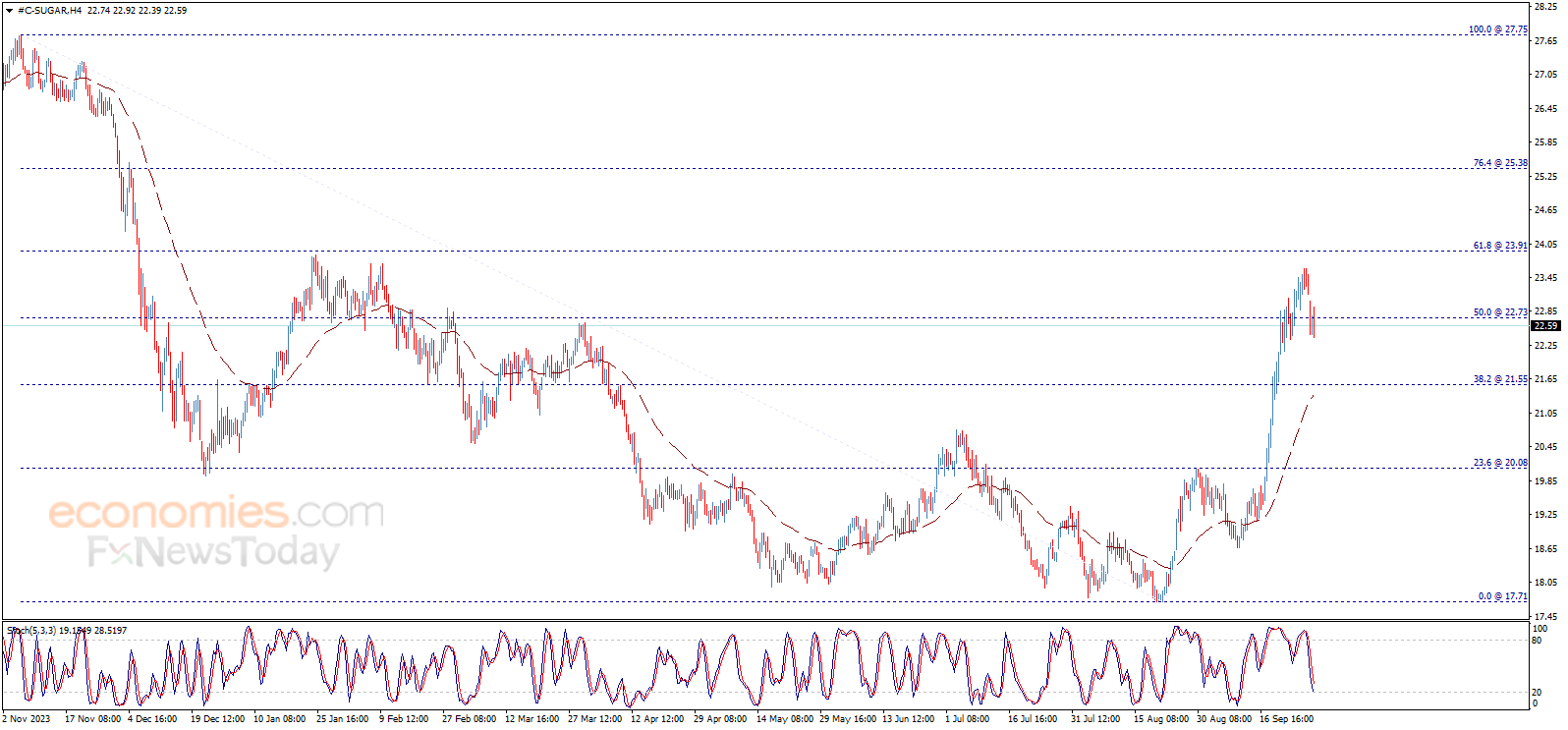 واجه سعر السكر ضغط سلبي قوي مع إغلاق تداولات يوم الجمعة الماضي، حيث كسر مستوى 22.73$ واستقر دونه، ليتجه نحو تحقيق انخفاض متوقع خلال الجلسات القادمة، مستهدفاً مناطق 21.55$ بشكل رئيسي.