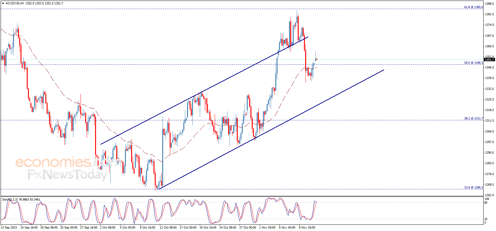 يفتتح سعر فول الصويا تداولات اليوم بإيجابية ملحوظة ليخترق مستوى 1348.30 ويحاول الابتعاد عنه، ليتجه نحو استئناف الاتجاه الرئيسي الصاعد، في طريقه لتحقيق مكاسب تبدأ عند 1371.50 وتمتد إلى 1385.00.