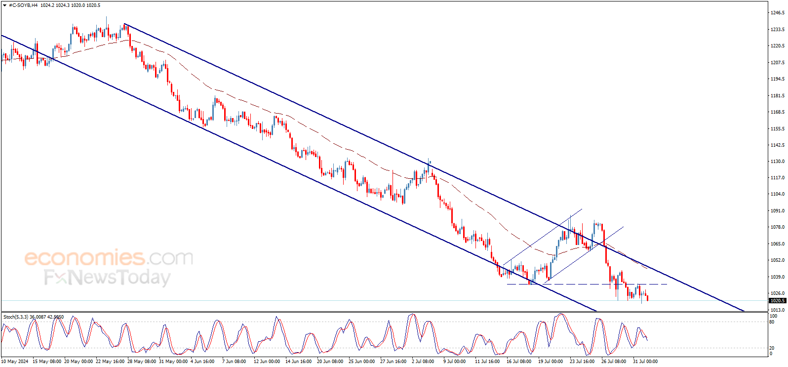 يظهر سعر فول الصويا تداولات سلبية جديدة مع افتتاح اليوم ليحاول الابتعاد عن مستوى 1033.10$، ليدعم استمرار الاتجاه الهابط المتوقع على المدى اللحظي والقصير، بانتظار زيارة مستويات 1000.00$ ثم 985.00$ كأهداف رئيسية تالية.