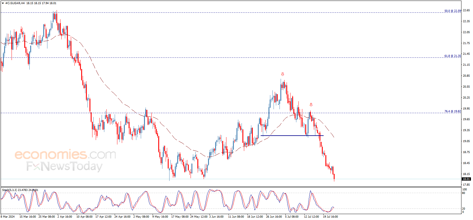 تمكّن سعر السكر من تحقيق هدفنا المنتظر عند 18.00$ ويستقر عنده، ونتوقّع استئناف التداولات السلبية اليوم وتجاوز هذا المستوى لفتح الطريق أمام التوجه نحو القاع المسجّل مسبقاً عند 17.35$ كمحطة سلبية تالية.