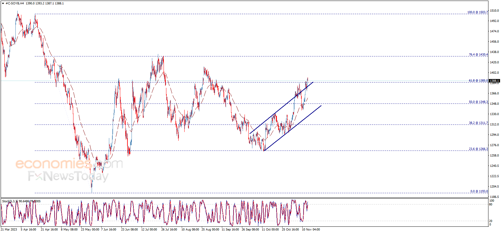 تمكّن سعر فول الصويا من اختراق مستوى 1385.00 والثبات فوقه، معززاً التوقعات باستمرار الاتجاه الصاعد خلال الجلسات القادمة، فاتحاً الطريق أمام تحقيق مكاسب إضافية تبدأ عند 1400.00 وتمتد إلى 1430.40.