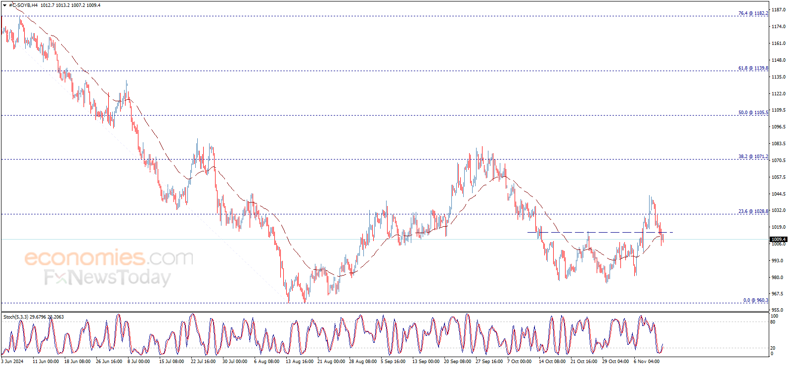 واصل سعر فول الصويا الانخفاض ليكسر مستوى 1015.00$ ويستقر دونه، ليفعّل السيناريو السلبي على المدى اللحظي ويتجه نحو تحقيق أهداف سلبية تبدأ عند 980.00$، ليكون الميل الهابط مرجحاً خلال الجلسات القادمة.