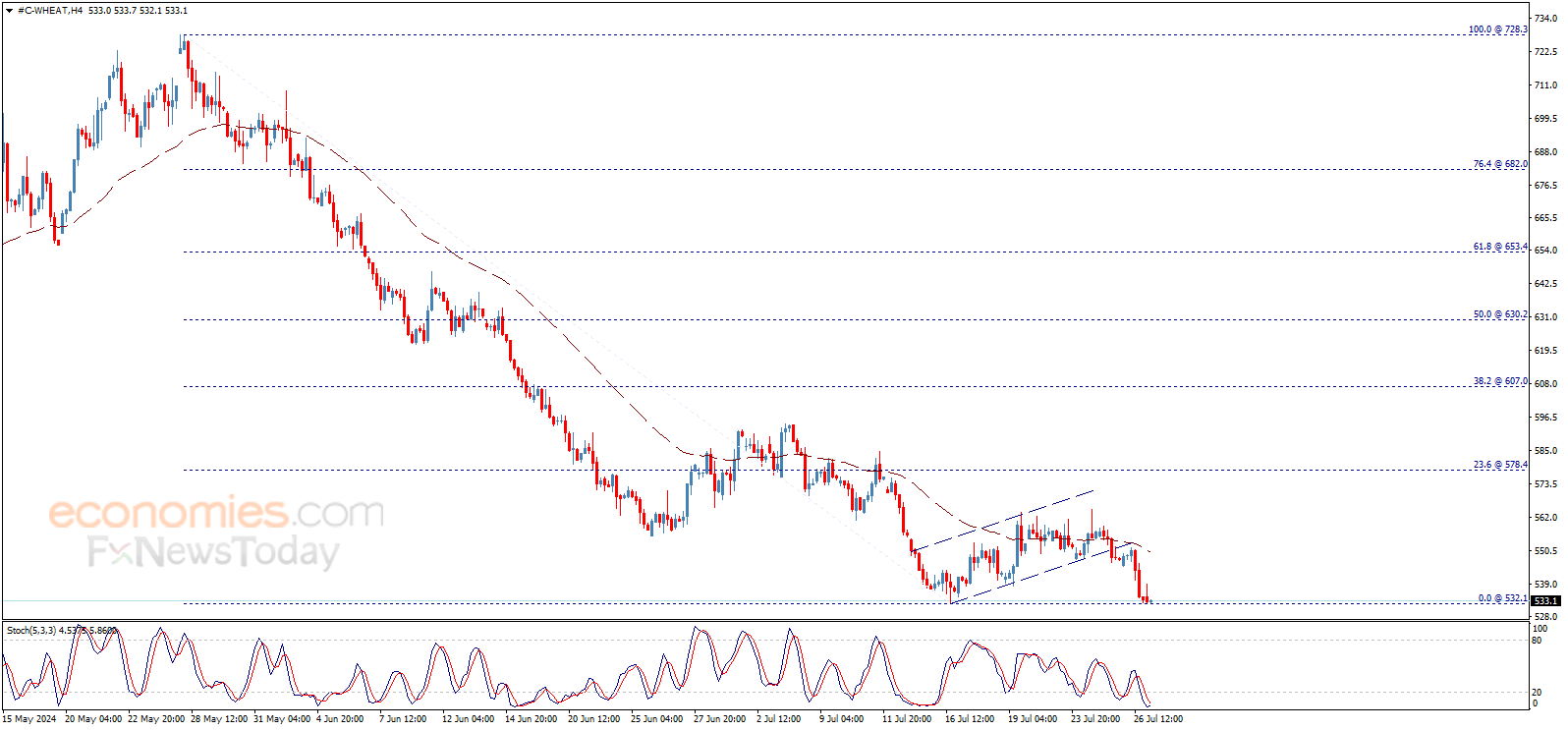 واجه سعر القمح ضغوط سلبية في الجلسات الماضية بعد أن أكمل تشكيل نموذج علم استمراري هابط تظهر ملامحه بالرسم البياني، ليختبر القاع المسجّل مؤخراً عند 532.10$، ونرجّح كسر هذا المستوى لفتح الطريق أمام تحقيق أهداف سلبية إضافية تصل إلى 515.00$ ثم 500.00$.